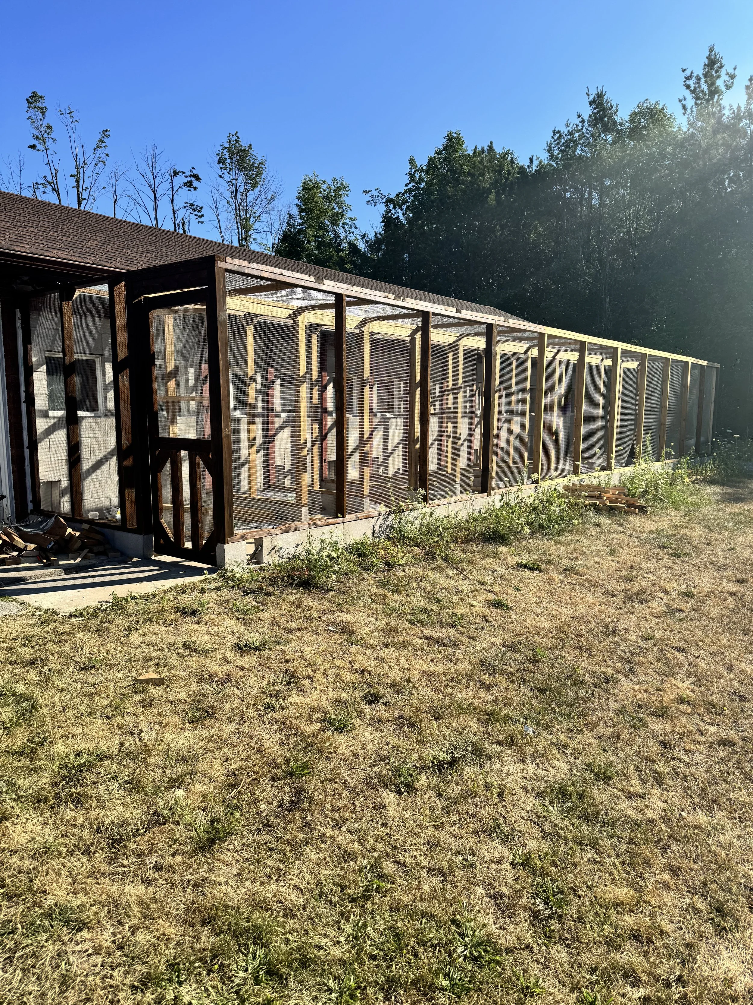 An excellent example of Max’ skills in trades and construction. Tasked with reconstructing 24 sheltered and secure porches for cats to use while staying at a pet hotel, this project called upon Max’s expertise in Masonry, Carpentry, and Design. Max single-handedly; demolished the old structure that was in the process of collapsing, designed the new structure, and completed the entire construction of the new structure, completely by himself… seriously, just him.